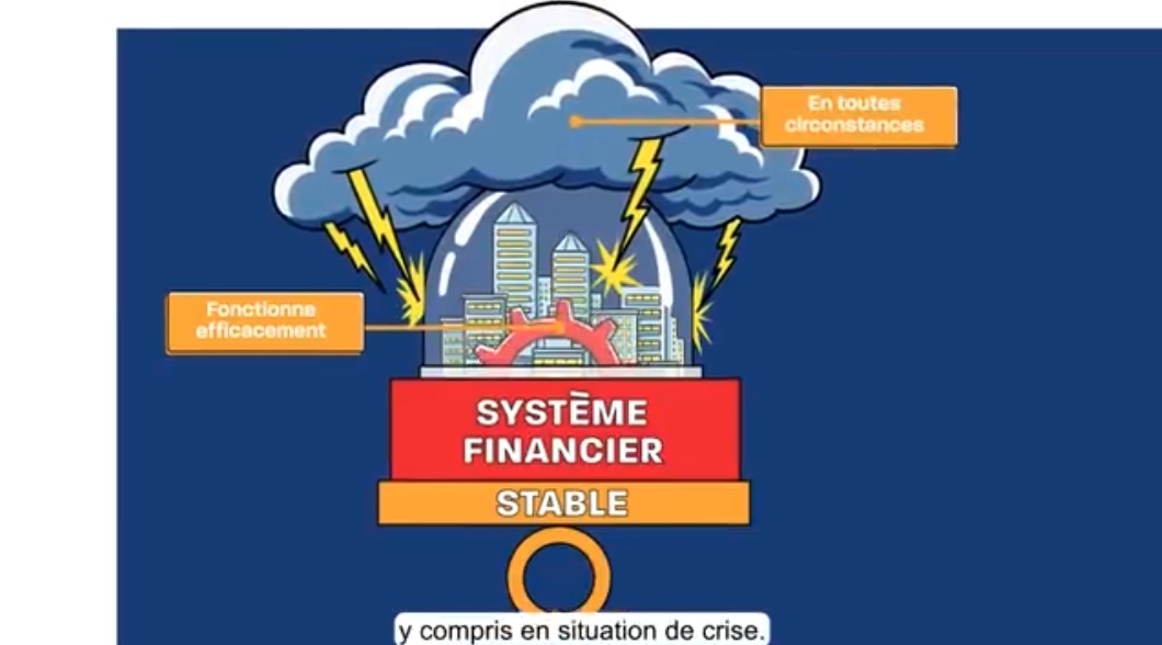 Le système financier englobe un ensemble d’acteurs (banques, assurances, infrastructures de marché, fonds d’investissement…). L’objectif de la stabilité financière est de s’assurer que le système financier est robuste, y compris en période de crise.